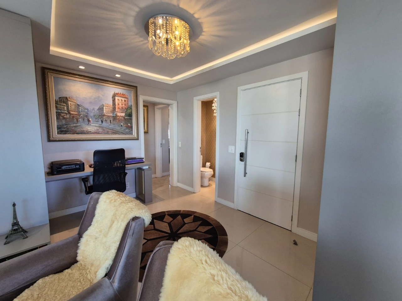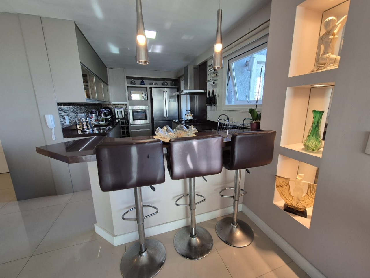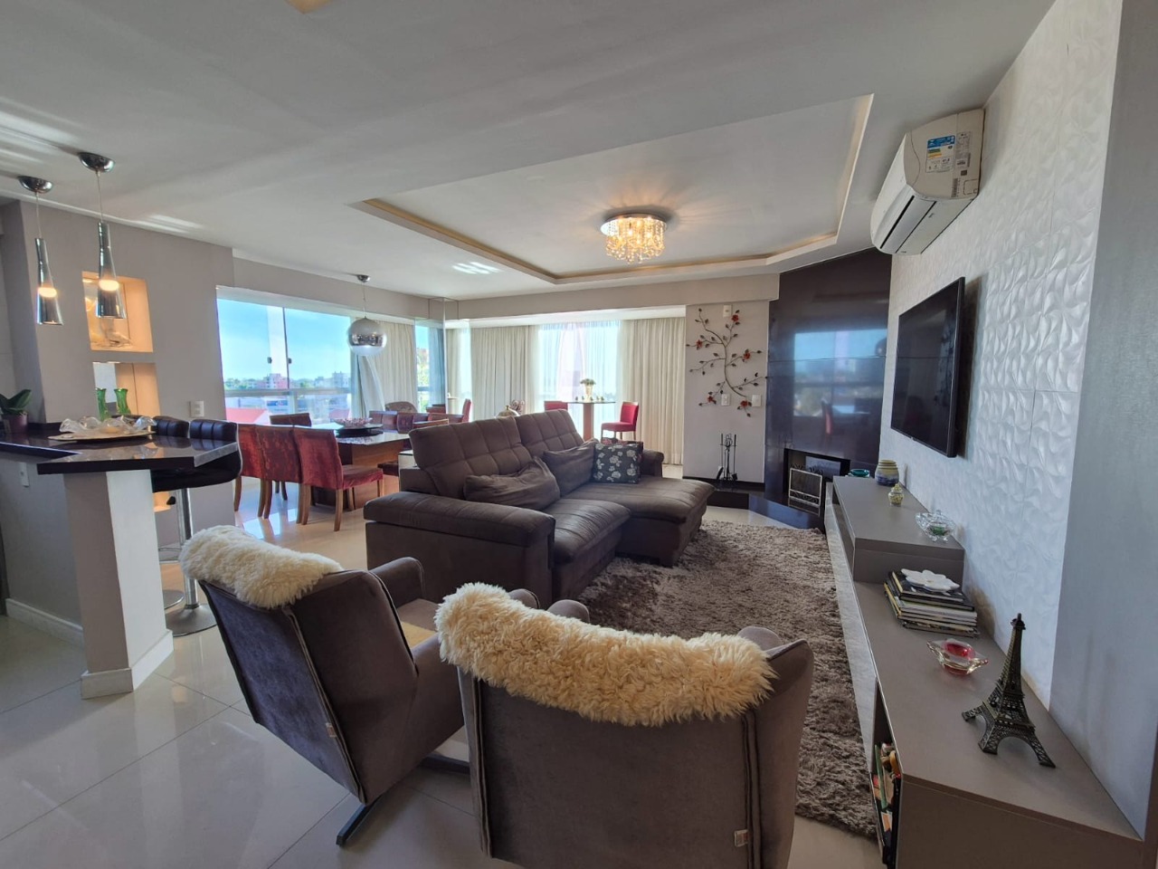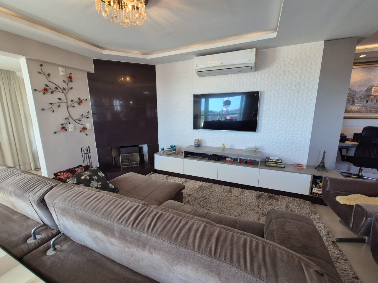 Living 02 ambientes com vista panorâmica, persianas automáticas, com home office integrado, lareira , lavabo, cozinha americana , sacada com churrasqueira , suíte com closet e hidromassagem, demais cômodos amplos e com suite americana, 02 vagas de garagem coberta. Condomínio com sistema integrado de monitoramento, acesso digital, piscina, dois elevadores. Agende sua visita!