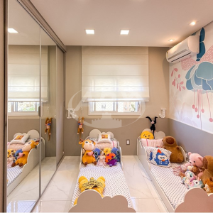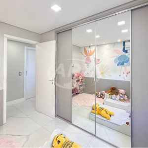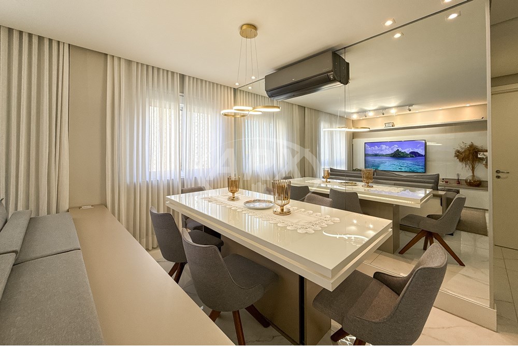 Apartamento à venda no Life Park Condomínio Clube em Canoas, com 76m2 privativos e projeto exclusivo assinado por arquiteta. Originalmente de 3 dormitórios, foi transformado em 2 para ampliar a área social. O living possui rebaixo em gesso, projeto de iluminação, painel de TV em marcenaria com LED, lareira ecológica em mármore e cristaleira em vidro com espelho. Permanece split com capacidade para climatizar toda a área comum. A cozinha integrada dispõe de ilha gourmet com bancada em mármore branco, cuba inox, torneira gourmet, fogão de indução, móveis sob medida, adega, churrasqueira e coifa embutida no teto. A sala de jantar é ampliada por parede inteira espelhada. A suíte master conta com closet, banheiro com bancada em granito cinza, box de vidro com nicho em mármore e banheira de hidromassagem. O quarto de solteiro em tom nude foi planejado para duas meninas, com armário sob medida de quatro portas, sendo duas espelhadas. A unidade ainda oferece lavanderia privativa e 1 vaga de garagem no subsolo. O condomínio conta com piscina adulto e infantil, salões de festas, sala de jogos, playground, quadra poliesportiva, academia no último andar da torre, portaria e segurança 24h com câmeras e administração local. Localização privilegiada, próxima ao ParkShopping Canoas, Parque Getúlio Vargas, Colégio Adventista e com rápido acesso ao Colégio Leonardo da Vinci e Colégio Cristo Redentor. Aceita financiamento. Uma oportunidade de viver com luxo, conforto e exclusividade em região valorizada de Canoas. Preço e disponibilidade do imóvel sujeitos a alteração sem aviso prévio.